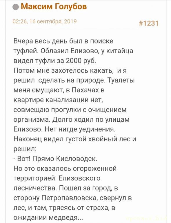 как скучно я живу))Экзорцист: 07 сен 2024, 16:49 Вспомнился кринж, когда Голубов поехал в Кисловодск, ушел далеко от санатория и вызвал МЧС, ибо такси дорогое