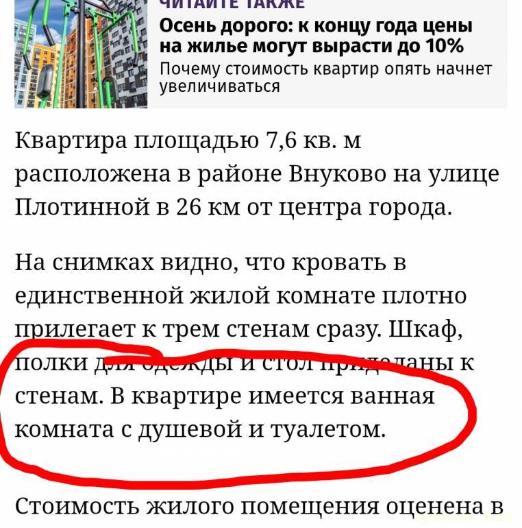 А зря. Есть такие квартирыNataliy304: 01 ноя 2022, 18:13 Даже я, как многие тут говорят, в неадеквате, в жизни бы о таком не додумалась, 7.5 кв м. назвать полноценной квартирой.