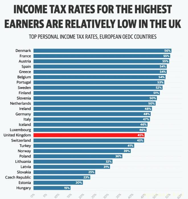 Ниже хорошо видно. Британия в нижней половине списка по максимальному подоходному. И это даже не учитывая другие налоговые возможности.
