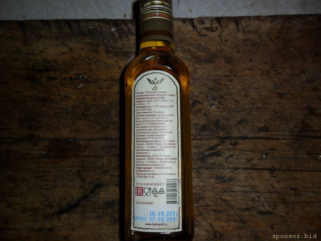 Масло льняное 250 мл Dial export 301 заказано в Петропавловске. Масло в стеклянном пузырьке весит 450 руб. Значит надо 100 руб. за доставку накинуть. Про вкус нечего не скажу, он есть, масло слегка горчит, но не знаю с чем его сравнить. Не берите льняное масло – если вам хотят продать бурду, то начнут втирать что она чрезвычайно полезная.