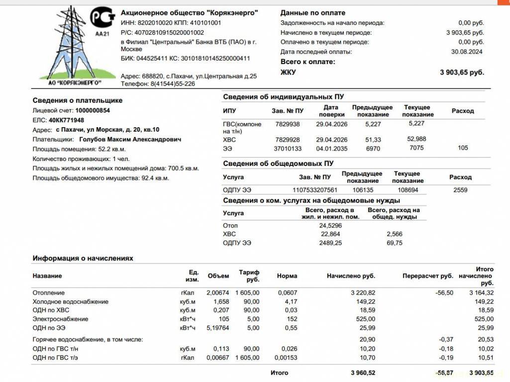 ЖКУ «Корякэнерго» 30 сентября 3 903,65 ₽