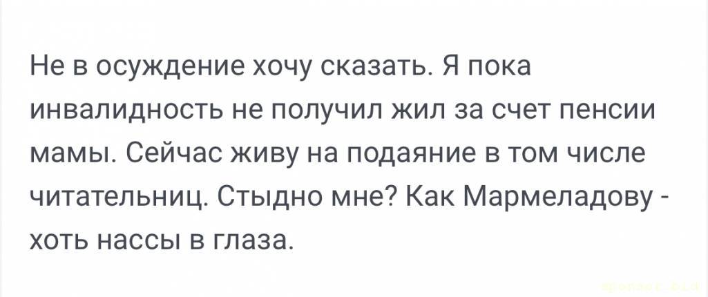 Re: Уважаемые читатели. Пришлите хоть 50 рублей инвалиду на покушать