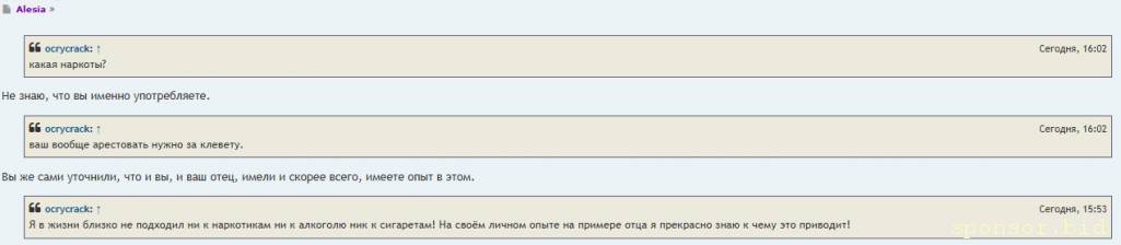 Уважаемая Алесиа, какие наркотики о чем вы? Вы вообще в своем уме? Я в своем сообщении сказал что никогда даже близко к наркотикам не подходил, какое бл вы право имеете что то говорить о моем отце? Вы кто такой что бы его и меня в чем то обвинять? Вы отбросок общества, из за таких как вы люди которым реальна нужна помощь страдают.Alesia: 19 янв 2025, 18:38 Значит именно вы пытаетесь выложить не свои данные, а другого человека. Но свои откровения о наркотиках вы уже выложили