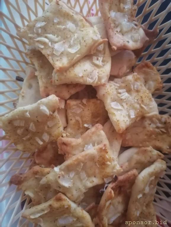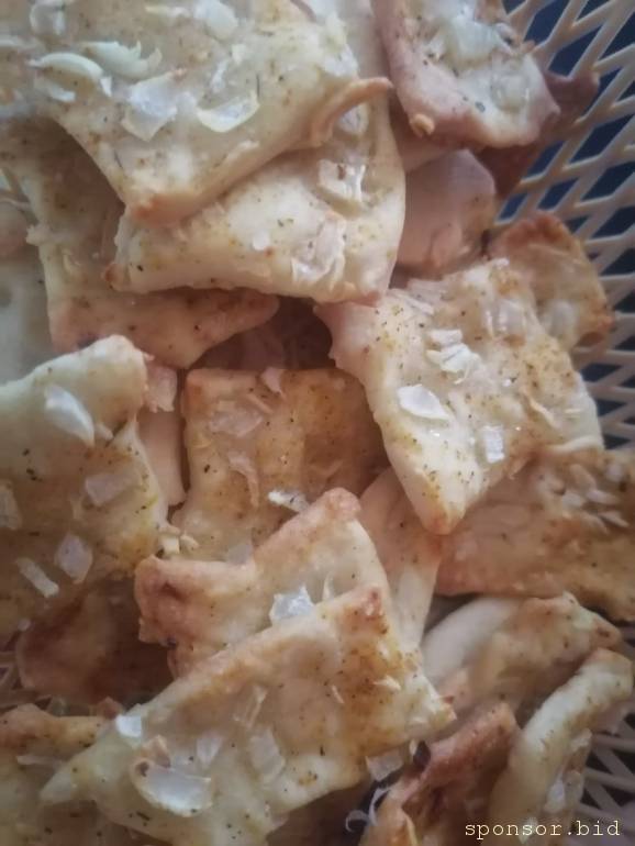 Пропорции не знаю, все на глаз делала, но весь состав - это мука, вода, соль, растительное масло, лук и любая специя по вкусу. Получилась очень клевая штука. Вот.