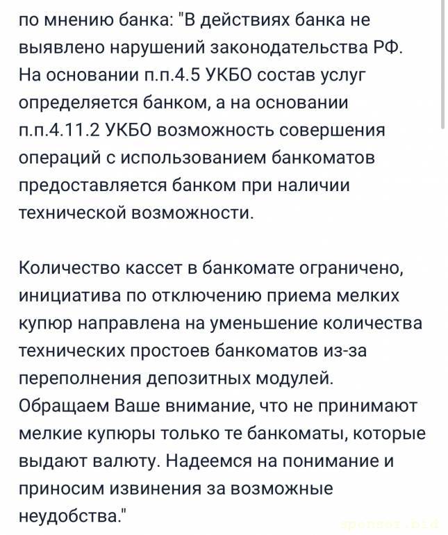 Не выдумывай. Все купюры принимаются банкоматами.Mathilda: 22 дек 2023, 23:17 Оффтоп: банкоматы Тинькофф отказываются жрать сторублёвки, не считая ничего мельче пятисот за деньги ). У меня их уже вагон накопился )). И в отделение некогда идти. Раздаю чаевые.