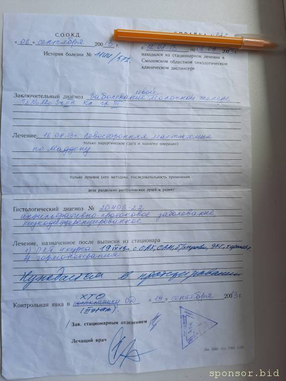 Справка номер 872. От 6 сентября 2013г. Г. Смоленск. Областной онкологический диспансер. Можете проверить, кто не верит.