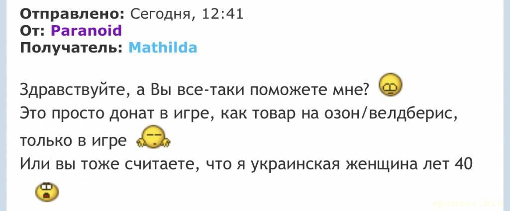 А я реально думала, что здесь нормальные просьбы. Хотела помочь соотечественникам.Hans: 12 апр 2024, 13:57 ну, мной, например, форум найден лет 7 назад в процессе преследования одной попрошайки из городского паблика в ВК