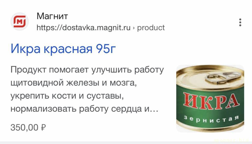 Я в магните вот что нашла. Настоящая?Бронислав В: 27 окт 2023, 21:46 Почему имитация? Обычная красная икра. Вот устриц в Пятерочке не видел.