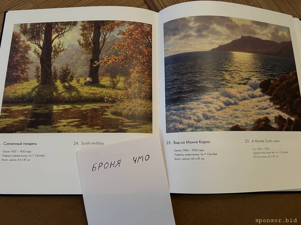 Что-то у вас уже истерика началась, как я погляжу. Зачем мне его фамилия? Человек увидел, что мне понравились картины, и подарил мне альбом. Надо же догадаться устроить срач по этому поводуБронислав В: 02 мар 2024, 08:36 И перечень художников, картины которого находятся в частной коллекции? Или он тоже тайный владелец , и информация, попавшая в руки охранника из аптеки, сильно подпортит его репутацию?)))