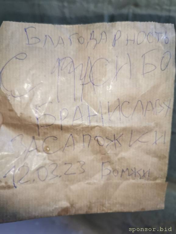 ОТ БЕЗДОМНЫХ И ОТ МЕНЯ ЛИЧНО ПРИНОСИТСЯ БОЛЬШАЯ БЛАГОДАРНОСТЬ БРОНИСЛАВУ, КОТОРЫЙ ДОЛЖЕН БЫТЬ ПРИМЕРОМ ДЛЯ ВСЕХ ГРАЖДАН