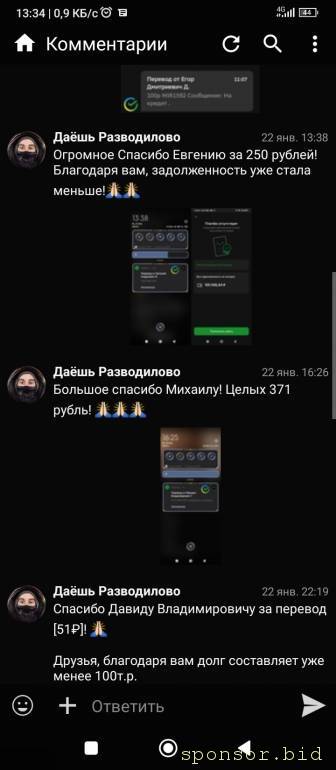 dash: 24 янв 2023, 11:31 а кто тогда мне скидывает деньги? Не большие, но все же. Кто то 10 рублей, кто-то 100, а кто-то даже 300 скинул.