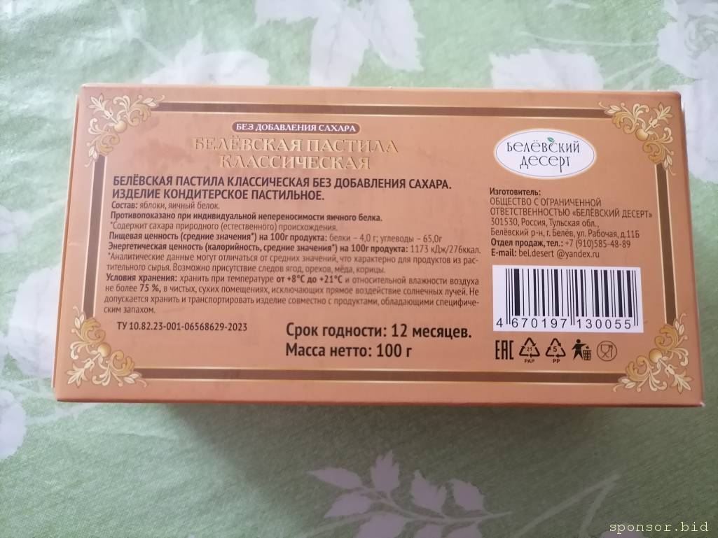 Да, конечно, тоже купить хотите?Илинка: 10 окт 2023, 13:17 Не, не надо таблетки. А вы можете эту пастилу (упаковку) со всех сторон сфоткать, пожалуйста?