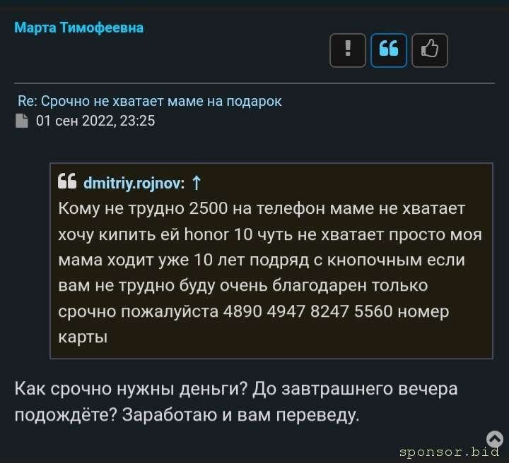Шутка просить деньги у незнакомых на смартфон каким то левым мамам. Я лучше своей маме 2 тысячи подарю, я её хотя бы знаю, с рождения знакомы.