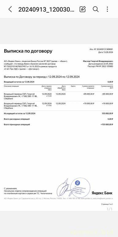 Подумайте ещё.Haeers: 14 сен 2024, 13:08 После перевода на Яндекс у меня списываются 84000 и 69000, оставив мне 2000 на моей карте , этого я не понял почему.
