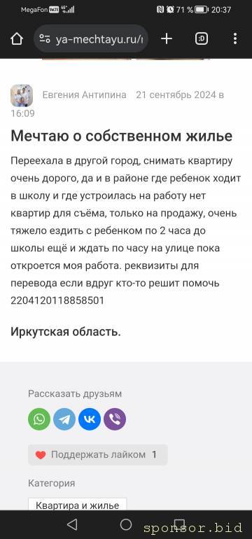 Прошу помощи на съем квартиры ⇐ Материальная поддержка