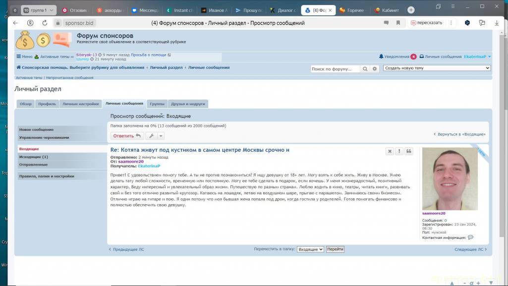 А почему вы сами не можете разместить объявление? Зачем лишние телодвижения через других людей, я не пойму что-то?EkaterinaP: 28 сен 2024, 14:08 Можете размещать полностью мой текст обьявления в соцсетях. Ставьте обьявление на авито и если кто вам напишет то дайте мой телефон