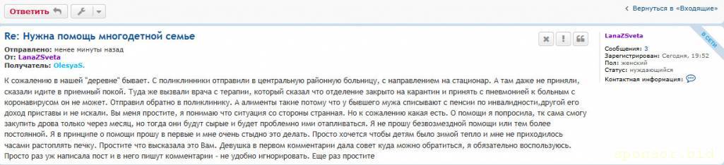 Думаете, этот форум для выдачи денег? Кредиты и МФО в помощь, раз уж не безвозмездно.LanaZSveta: 16 окт 2024, 20:08 Доброго времени суток. Срочно нужна помощь на закупку дров для печи. Проживаю с детьми в частном доме без удобств, так получилось что долгое время была на больничном. К сентябрю еле собрала детей в школу, и закупить дрова к зиме было уже не на что. Очень прошу помочь, не безвозмездно. Так получилось что уже несколько лет одна с детьми и попросить о помощи не кого