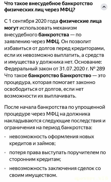 в МФЦ, заявление о внесудебном банкротстве, всё бесплатно.Кристина Русина: 05 ноя 2024, 08:57 Здравствуйте, мне 19 лет, попала в кредитную яму, я работаю и учусь, пытаюсь выбраться из этой ситуации, но не выходит. Общая сумма долго 200000рублей, помогите кто чем может пожалуйста