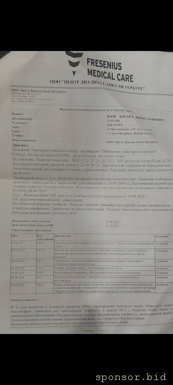 Назад вернуться домой, в родные края это будет билет в один конец, т.к в родном городе не делают пересадку почки, сам по себе город маленький, работы катастрофически не хватает и уже я не смогу полностью справляться с задачами в нынешнем состоянии и надо подбирать под себя вакансию без тяжёлых физических сил. Хочу выбраться из этого и потихоньку налаживать свою жизнь, но нужны деньги пока не нашёл работу и пока не восстановился до конца