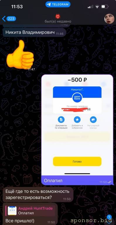 Оплата 500₽.