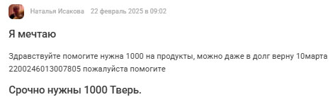 Авторша из Твери, еще в феврале клянчила на ямечтаю тысячу "на продукты". Теперь цветочков захотелось)