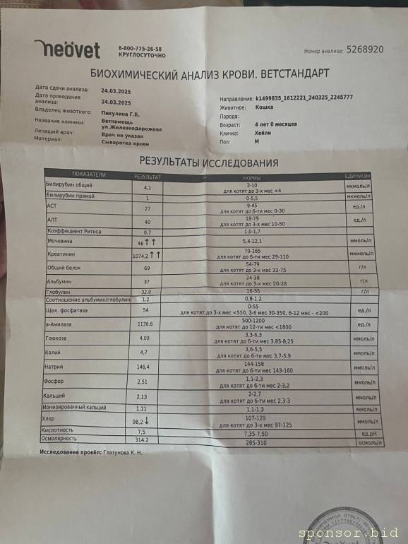 Ничего страшного, сейчас вам Ганс пару здоровых котов предложит.Ксения0255: 27 мар 2025, 21:05 Здравствуйте!У меня заболели оба кота, мочекаменная болезнь, не могут сами сходить в туалет, приходится отвозить каждый день в больницу, чтобы поставили катетер, помимо мкб у них острая почечная недостаточность, анализы плохие, если состояние ухудшится и в ближайшее время не начнут сами ходить в туалет, то придется делать операцию, уретростомию