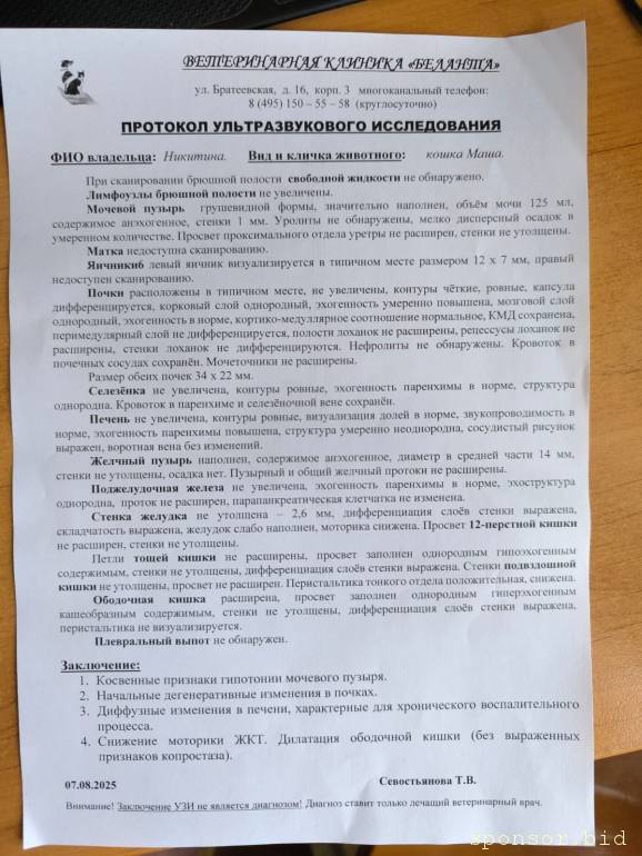 Алексей, вы еще и Татьяна Вячеславовна?Brazilian: 11 авг 2025, 17:00 Вы по одной случайно добавленной фотографии решили кто мошенник, а кто нет. Хотите приглашу вас в группу и посмотрите все доказательства и извинитесь за свои слова. Кто куда ездит вас не должно интересовать. Мы собрали деньги своими силами, но их не хватает. Много денег уходит на осмотры и лечение кошки. Перед операцией надо много манипуляций провести с кошкой так как она плохо самостоятельно ходит в туалет. На операцию собираем. Если вы не хотите помогать это ваше право. По поводу серого вещества вы глубоко ошибаетесь дайте свой телефон я добавлю вас в группу. Только никто из вас не захочет этого делать и смотреть все доказательства правды. Только писать будете кто мошенник, а кто нет и у кого чего хватает. Спасибо за внимание