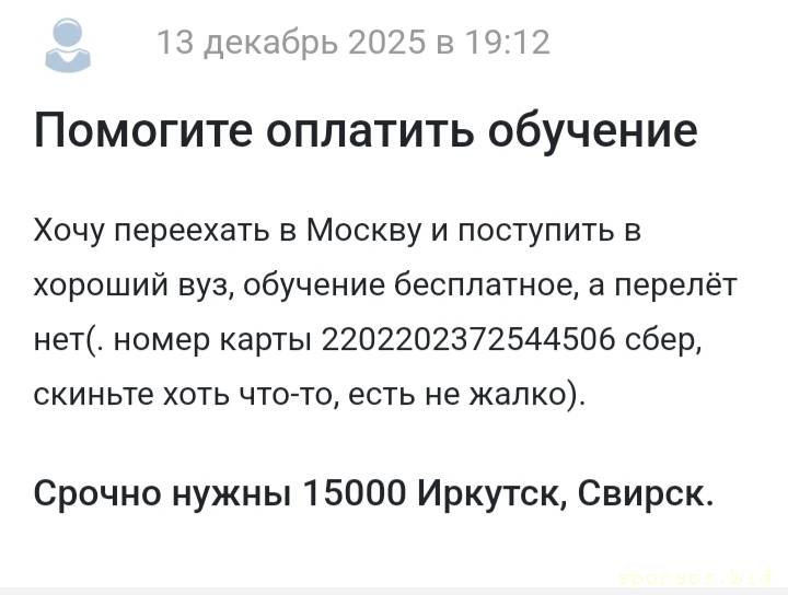 Буду рад финансовой помощи. 2202202372544506 сбер)