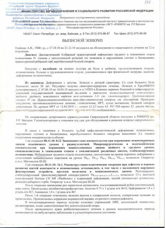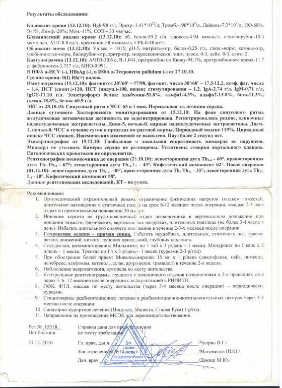 В моём случае после таких операций реабилитация на каждый год . Если кто может помогите пожалуйста материально ,чтоб выехать на лечение .А какая должна быть выписка ,если желали операции в 2010 году .