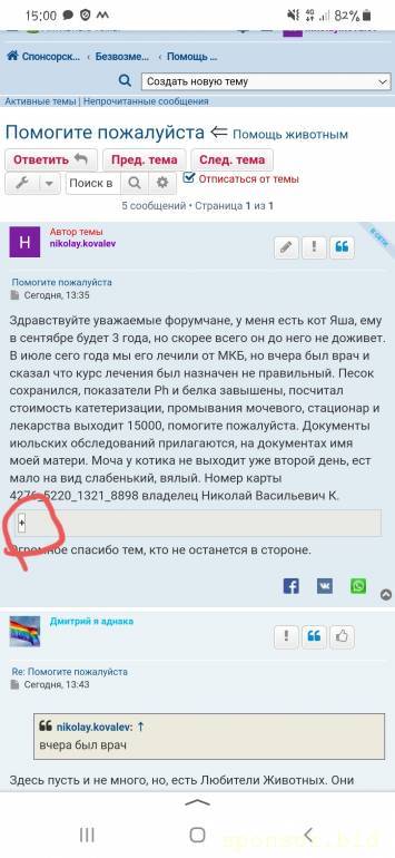 там счета аж с 2020 года, может просто нового кота подарить вам? у меня есть несколько лишнихnikolay.kovalev: 20 сен 2022, 13:35 Здравствуйте уважаемые форумчане, у меня есть кот Яша, ему в сентябре будет 3 года, но скорее всего он до него не доживет. В июле сего года мы его лечили от МКБ, но вчера был врач и сказал что курс лечения был назначен не правильный. Песок сохранился, показатели Ph и белка завышены, посчитал стоимость катетеризации, промывания мочевого, стационар и лекарства выходит 15000, помогите пожалуйста. Документы июльских обследований прилагаются, на документах имя моей матери. Моча у котика не выходит уже второй день, ест мало на вид слабенький, вялый. Номер карты 4276522013218898 владелец Николай Васильевич Огромное спасибо тем, кто не останется в стороне.