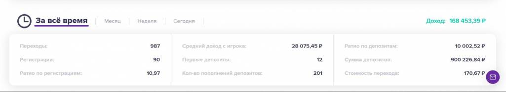 На партнёрский сайт БК мы будем получать от 50% до 70% от проигранных ставок от наших игроков.