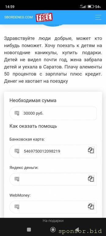 Люди добрые помогите пожалуйста кто нибудь поможет может. Жена забрала детей и уехала в Саратов, подала на алементы, плочу алементы 50 процентов с зарплаты плюс кредит. Хочу поехать к детям на новогодние каникулы, купить детям подарки. Детей не видел почти год нужно хотябо 21000т.89061314974 билайн