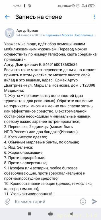 походу мама таки узнала, что у её сыночка микрозайми и сердечко не выдержалоmaksim.denisovich: 31 янв 2023, 17:46 Здравствуйте!!! Помогите пожалуйста материально, прошу вас! У друга мама умерла в реанимации от инсульта и деньги нужны на похороны, тело в морге не может лежать так долго, а я
