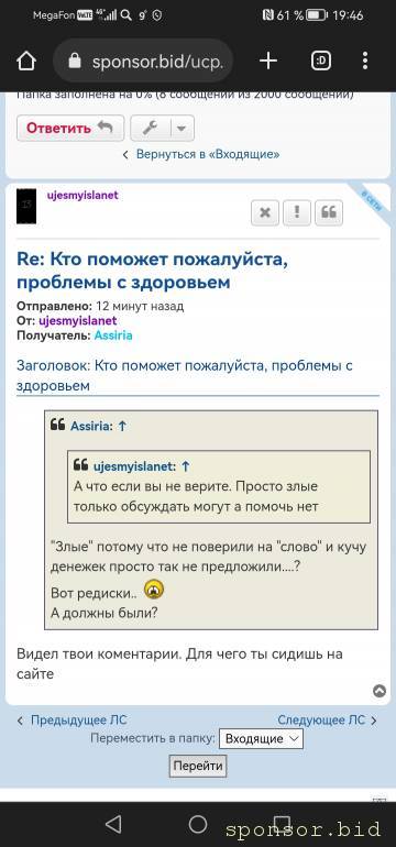 Зачем вам помогать?ujesmyislanet: 25 мар 2023, 18:14мне нужна помощь только незнай помогут или нет. Проблемы с желудком что колит, слабость и с туалетом не хорошо . Мой вес 55кг Я решил пойти на работу незнай как будет там. Если меня было всё хорошо здоровьем я бы ничего не просил а поехал бы в Москву работать на вахту, я там раньше работал. За что мне это наказание одни проблемы. Кто помочь может пожалуйста. Если кто хочет поговорить по телефону я не против через телегу. Нужна поддержка деньгами хочу купить одежду и накопить денег чтобы снять квартиру. Чтобы лечится в городе а в местной больнице надежды нет. Пишите если готовы помочь