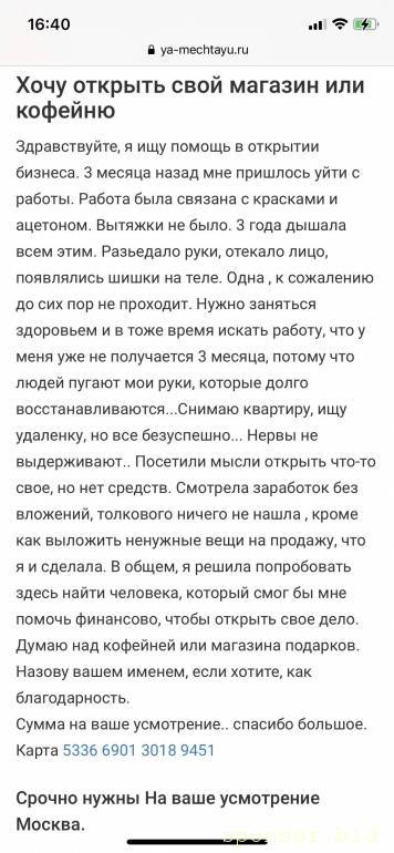 Пожалуйста, помогите финансово, на открытие и развитие. Спасибо!