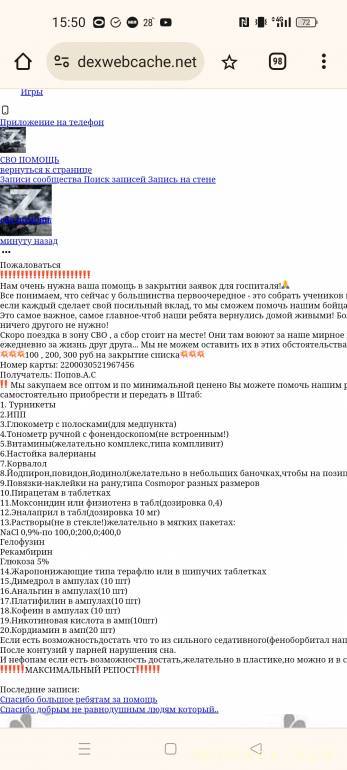 Ищите волонтёрские группы, здесь желающих слить средства на аммуницию для СВО вы врядли найдёте.nikolay.rekunov: 03 окт 2023, 23:29 Бригада сво. 36. Разведка. Угледарское направление. Ищет спонсоров. Граждане. Мы в вас необходимы. Прошу помощи. Помогите. Главное транспорт. Встретим в ростове если что. Моя почта nikolkapro1117@gmail.com