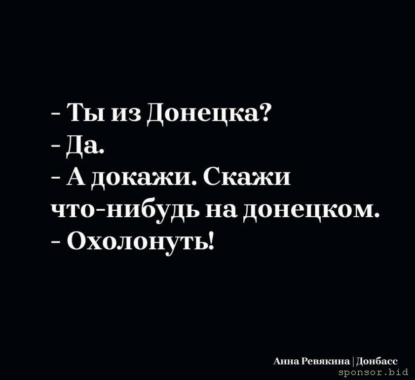 да кто ж его знает, это я ваших, донецких цитирую)Queercat: 26 июн 2023, 01:12 Hans, бог ты мой, это где ж такой Донецк находится то - под Хмельницком?))
