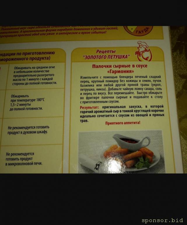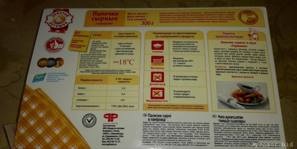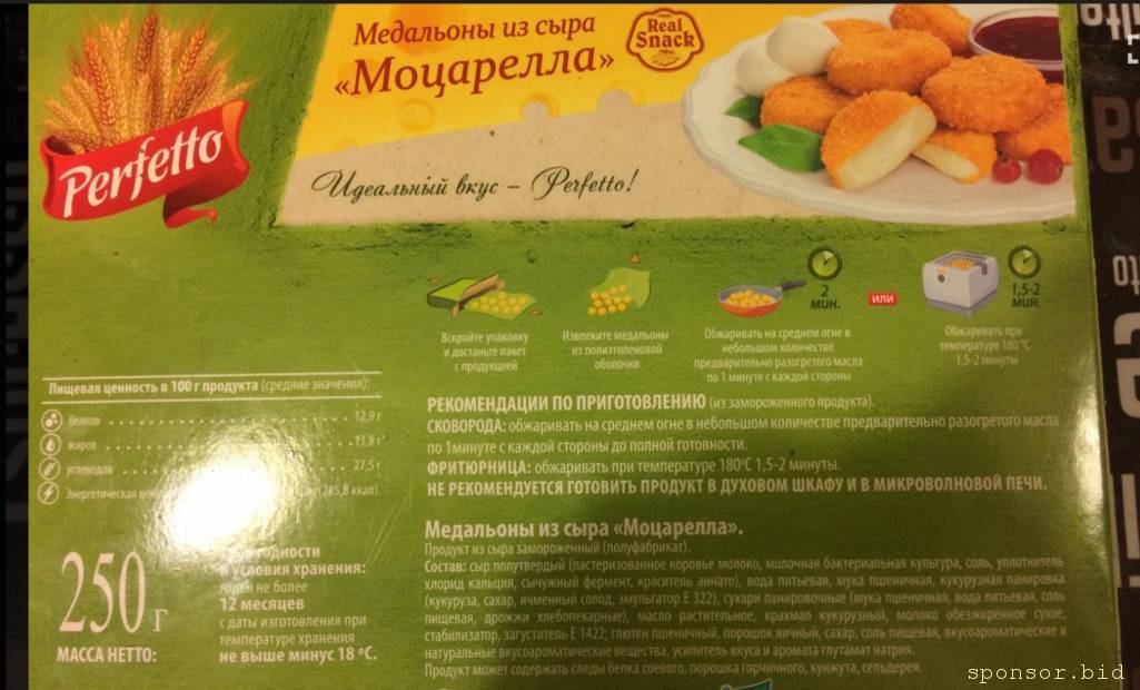 Кругетсы сразу возникли в голове, бывают с плавленным сыром внутри, бывают без. Но они из курицы в панировке. А так наверняка в ресторанах и не из шпината приготовит)Илинка: 25 июн 2023, 11:27 ривет всем. Кто-то сможет скинуть мне фото этикетки (русскоязычный вариант) продукции ниже? Это - жареные кусочки сыра в панировке (не уверена, как в России называются).