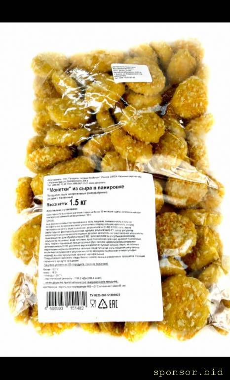 Привет всем. Кто-то сможет скинуть мне фото этикетки (русскоязычный вариант) продукции ниже? Это - жареные кусочки сыра в панировке (не уверена, как в России называются).