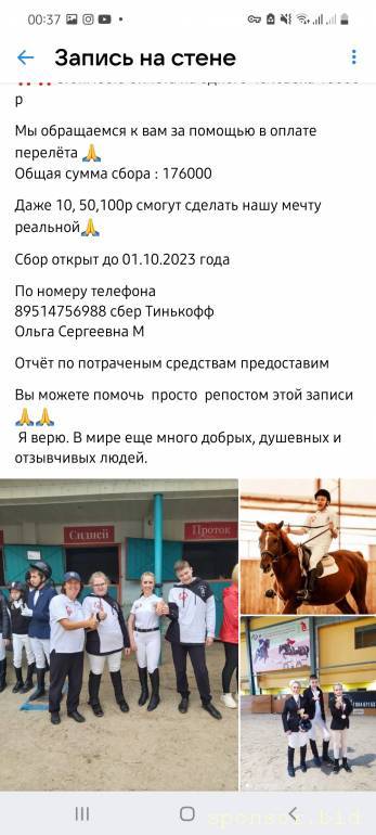 А Ольга Сергеевна, это кто?kseniya.peresedova: 16 авг 2023, 23:18 Друзья, мы ищем добрых и отзывчивых людей, которые могут помочь спортсменам с инвалидностью выехать на соревнования по конному спорту в г.Сочи