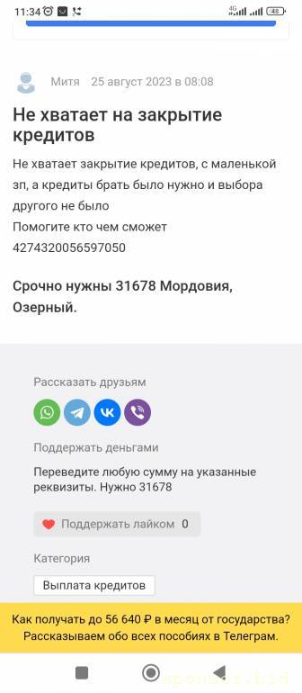 Выручайте братьЯ! ⇐ Материальная поддержка