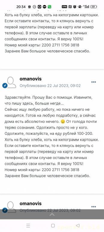 Если оставите контакты, то я клянусь вернуть с первой зарплаты (переведу на карту или номер телефона). В этом случае оставьте в личных сообщениях свои контакты. Я верну 100%!