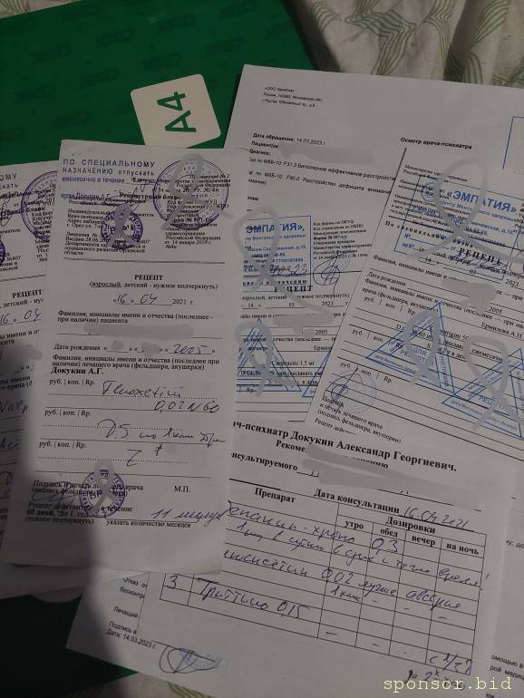 Последний раз когда я была у врача (год назад) мне подтвердили диагноз БАР и стоимость приёма (он должен быть раз в месяц) составила 5 000₽ + лекарства (2 препарата — нормотимик и антидепрессант) около 5 000₽. В идеале иметь психотерапию (2-4 раза в месяц) по 4-7 тысяч за сеанс (для расчётов взяла 5 000₽ 2 раза в месяц). Но без психотерапии я смогу справиться, я понимаю, что стоит она дорого. Из документов у меня есть только рецепты на моё имя за разные даты (на соответствующие диагнозу препараты).