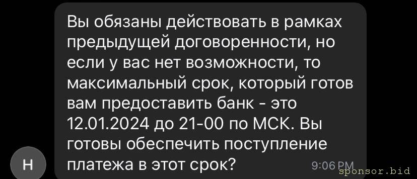 Вот именно за этим «не могу сам»oleg.shafranov: 10 янв 2024, 19:48 мне незачем обманывать, я погашу его сам, просто банк мне поставил срок до 12 января, а на данный момент я не смогу его закрыть