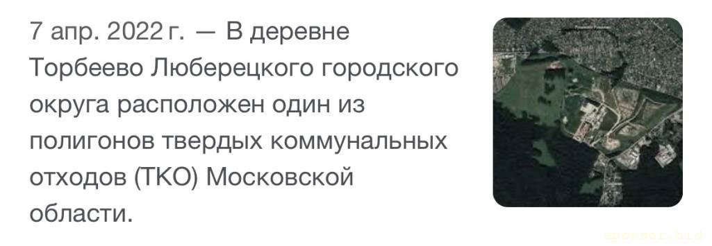 Спасибо за представленную информацию. Теперь знаю, что где-то в Люберецком районе есть деревня Торобеево, где недавно был пожар. А также есть какой-то завод и полигон. Увы, про застройку на полях аэрации я в курсе. Только не знаю, кому принадлежит эта территория: Москве или Люберцам. Слышал про какие-то терки по этому поводу, но не вникал.