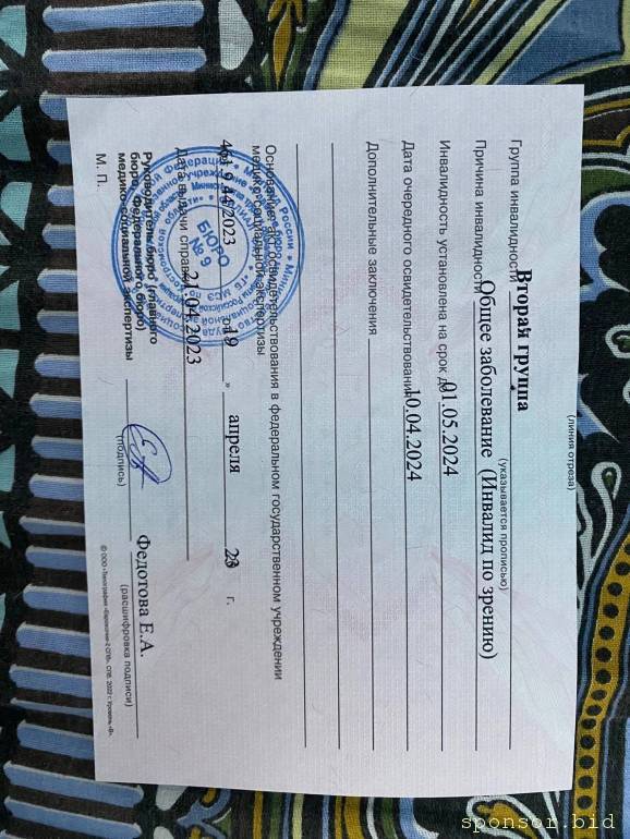 Доброго времени суток, я бы хотела обратиться за помощью в оплате дорогостоящего препарата, постараюсь коротко описать ситуацию. Я мама двоих мальчишек , мне 25 лет, до болезни и потом еще несколько лет я работала в аптеке за первым столом , сейчас работать не могу так как состояние здоровья сильно ухудшилось, в 19 году заболела оптиконевромиелитом из за частых обострений практически потеряла зрение , плохо хожу , есть нарушения тазовых функций . Сейчас мне нужен препарат ритуксимаб для того чтобы не было обострений так как они могут привести ( к слепоте , параличу , или смерти ) 4 флакона на курс каждый флакон по 500мг/50мл . Документы все есть , справка об инвалидности тоже . Буду благодарна любой помощи, спасибо всем большое за отклик.
