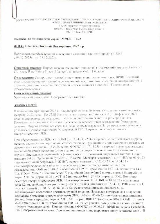 Да, в том числе. Но у супруга автора гепатит С, и на его фоне развился цирроз. Гепатитом можно заразиться при переливании крови (что крайне маловероятно), при половом контакте и - что самое частое - при употреблении наркотиков. Потому и спросила.Леся С.: 20 фев 2024, 12:38 Предполагала, что цирроз развивается в т.ч. и после многолетнего алкогольного токсикоза. Впрочем, я не медик)