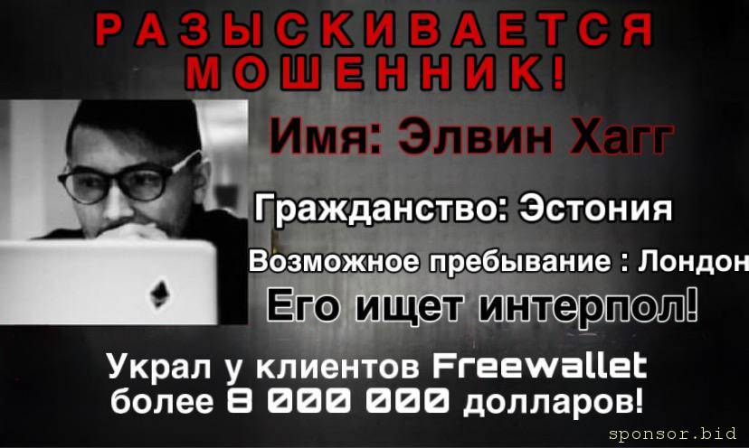 Мошенники Freewallet украли вашу криптовалюту? Ваш кошелек заблокировали и не позволяют вывести монеты? Напишите Элвину Хаггу и потребуйте выплаты своих сбережений!