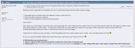 Остерегайтесь Элвина Хагга, генерального директора Freewallet org, который обманывает людей с помощью Ханны Хагг.