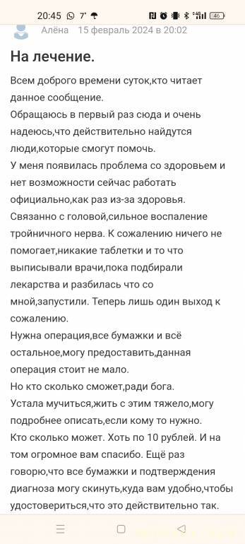 странно, обычно все лечатся за чужой счёт без проблемAllen: 15 апр 2024, 20:36 Да,собирала насчёт нерва. Но никто так и не смог помочь. На сайте никто не писал